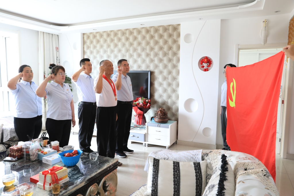 7月11日,集团公司党委委员、纪检委书记、工会主席张立峰带领公司青年党员走访慰问了党龄满50年的老党员,并为他们颁授“光荣在党50年”纪念章。