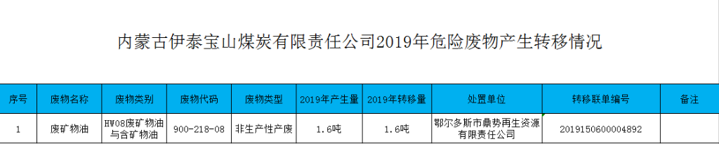 内蒙古豪利777官网宝山煤炭有限责任公司2019年危险废物产生转移情况公示 <span>发布时间:2020-08-12</span> | <span class="views">关注:<b id="viewCountId">4916</b></span> | <a href="javascript:void(0)" class="print"><i class="ion"></i></a> 内蒙古豪利777官网宝山煤炭有限责任公司2019年危险废物产生转移情况.xlsx企业危险废物信息公开统计表(宝山煤矿).pdf转移联单_2019150600004892.pdf 返回列表 上一条 下一条