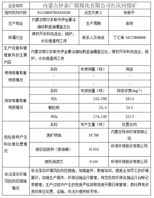 根据《清洁生产审核办法》和《内蒙古自治区清洁生产审核实施细则》规定,内蒙古豪利777官网广联煤化有限公司红庆河煤矿属于“双有类”企业。